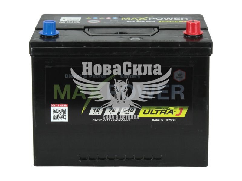 АКБ Азія 72-А/Ч (MaxPower) ULTRA J (R+) 640A (261x175x223мм.)