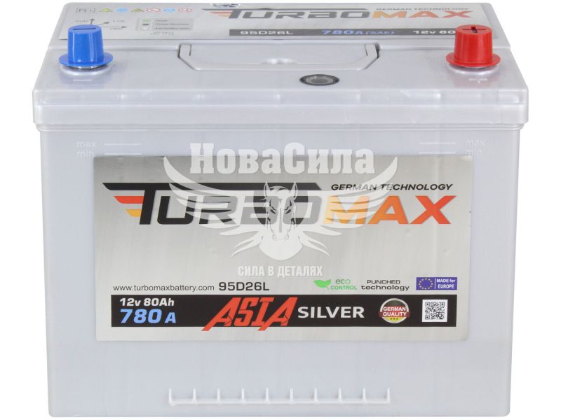 АКБ Азія 80-А/Ч (TurboMax) Silver (R+) 780A (261x175x223мм.)