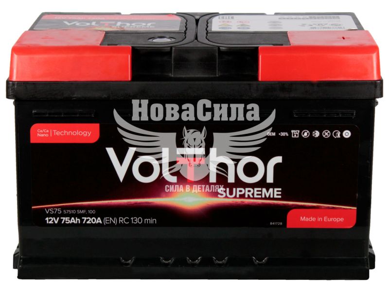 АКБ 75-А/Ч (VolThor) Supreme (R+) 720A (278х175х175мм.)