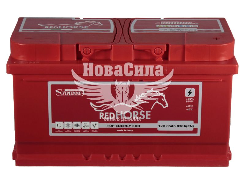 Акумулятор 85-А/Ч (Red Horse) Top Energy (R+) 830A (310х175х175мм) з Італії - потужний та надійний вибір для вашого автомобіля. Завдяки пусковому струму 830A, він забезпечує стабільний та ефективний запуск у будь-яких умовах. Висока якість італійського виробництва гарантує довговічність та відмінну продуктивність. Оберіть Red Horse Top Energy для максимального комфорту та надійності на дорозі!