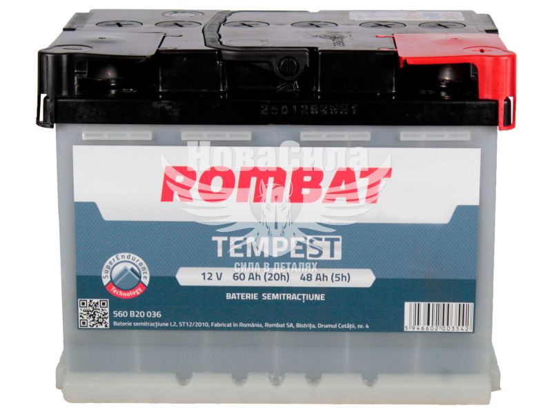 АКБ напівтяговий 12V 60-А/Ч R+ (Rombat) (кислотний, 242x175x190мм)