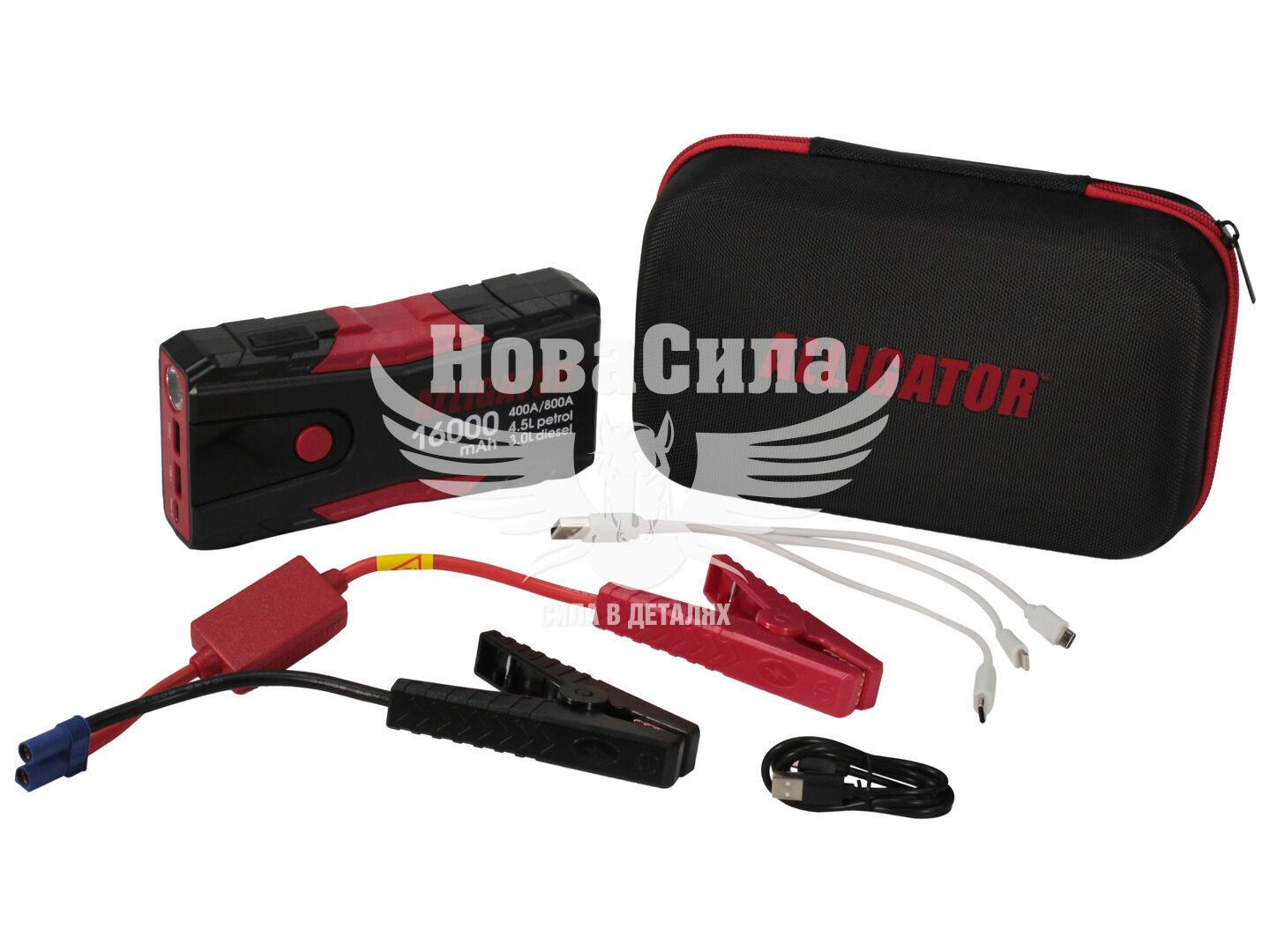 Великий резервуар енергії 16000 мАг: Дозволяє використовувати пристрій для декількох запусків або як портативний джерело енергії для заряджання електронних пристроїв.