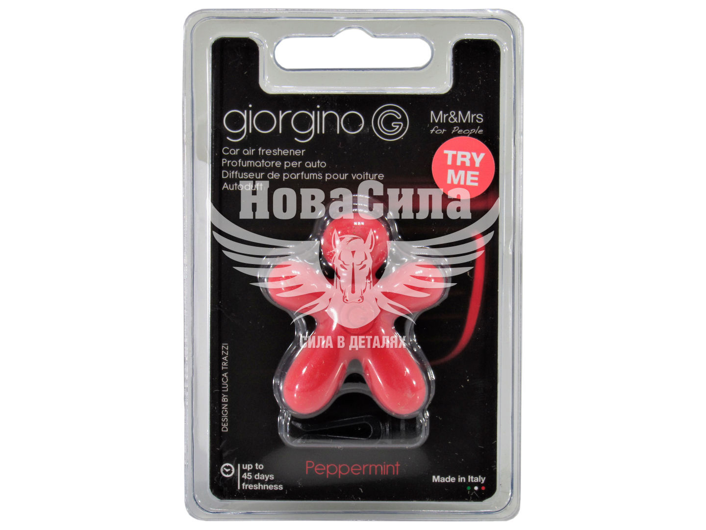 Giorgino – маленький супергерой, який огортає весь автомобіль приємним ароматом. Завдяки його приголомшливим пропорціям і ідеальним формам ви однозначно захочете бути поруч з ним. Характеристика аромату: Peppermint