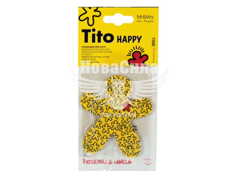 Ароматизатор (Mr&Mrs) Tito Happy Yellow Patchouli/Vanilla (суха картка)