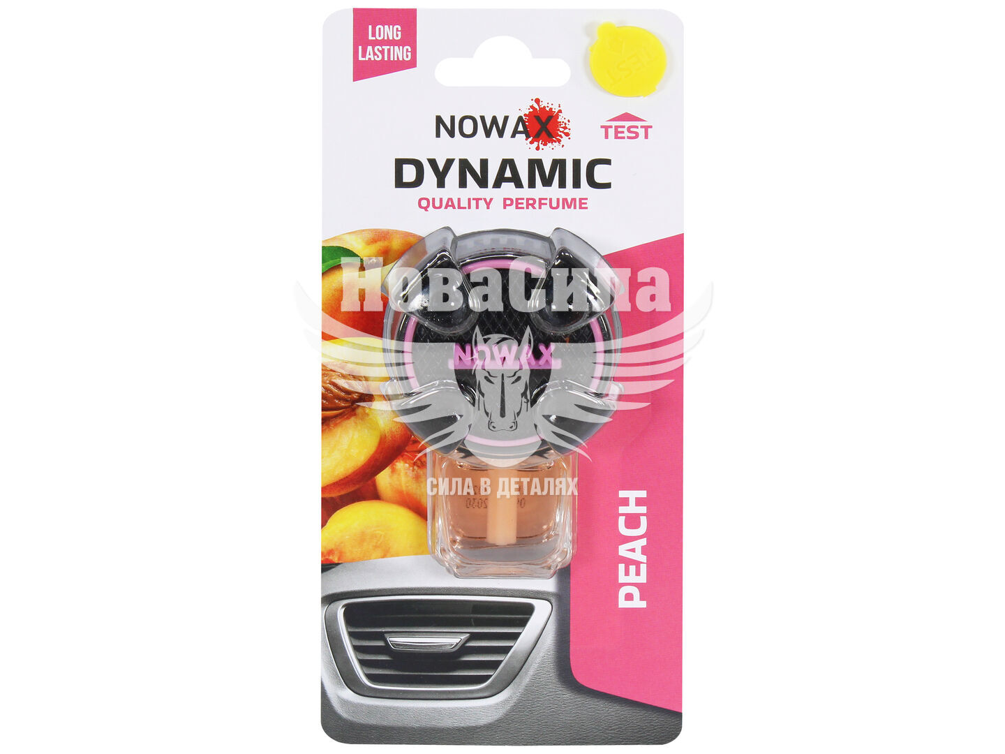 Nowax Dynamic Peach — це вибір для тих, хто цінує солодку свіжість і легкий фруктовий настрій у салоні автомобіля. Аромат соковитого персика швидко створює приємну атмосферу та ефективно нейтралізує неприємні запахи.
