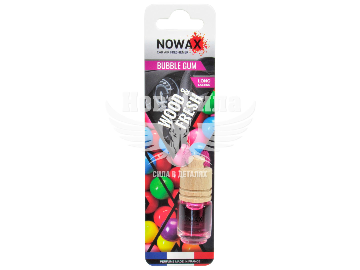 Компактний підвісний ароматизатор у формі скляного флакона з дерев'яною кришечкою. Завдяки невеликим розмірам Nowax Wood&Fresh Bubble Gum NX07702 може бути підвішений в будь-яке зручне місце, як на дзеркало заднього виду, так і гачки в салоні, кріплення сонцезахисного козирка – незалежно від місця розташування забезпечує рівномірний розподіл аромату по всьому салону автомобіля. водія та пасажирів. Ароматична рідина вироблена у Франції, на основі високоякісних гіпоалергенних матеріалів, завдяки чому освіжувач повітря є безпечним і не дратує органи дихання.