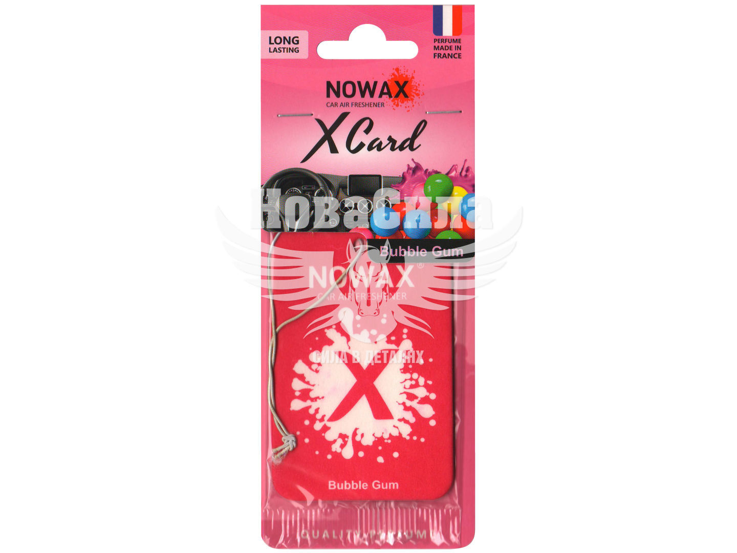 Автомобільний підвісний ароматизатор у формі картонного листочка, просоченого парфумерною композицією. Відрізняється дуже компактними розмірами і може бути підвішений як у звичне місце - на дзеркало заднього виду, так і в будь-яке інше зручне для водія, наприклад, на кріплення сонцезахисного козирка або різні гачки. Незалежно від місця розташування, ароматизатор рівномірно поширює приємний аромат по всьому салону автомобіля, забезпечуючи високий рівень комфорту водію та пасажирам. Ароматизатор NOWAX X CARD Bubble Gum NX07540 нейтралізує неприємні та сторонні запахи у салоні, у тому числі запах вогкості, вихлопних газів, тварин, тютюнового диму. Зберігає свої властивості протягом тривалого часу.