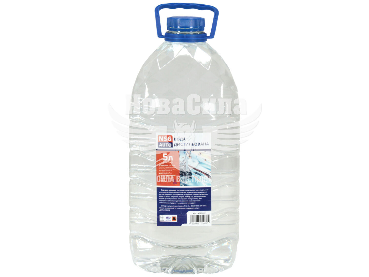 Дистильована вода NSG є прозорою рідиною в пластиковій каністрі, об'ємом 5 літрів.