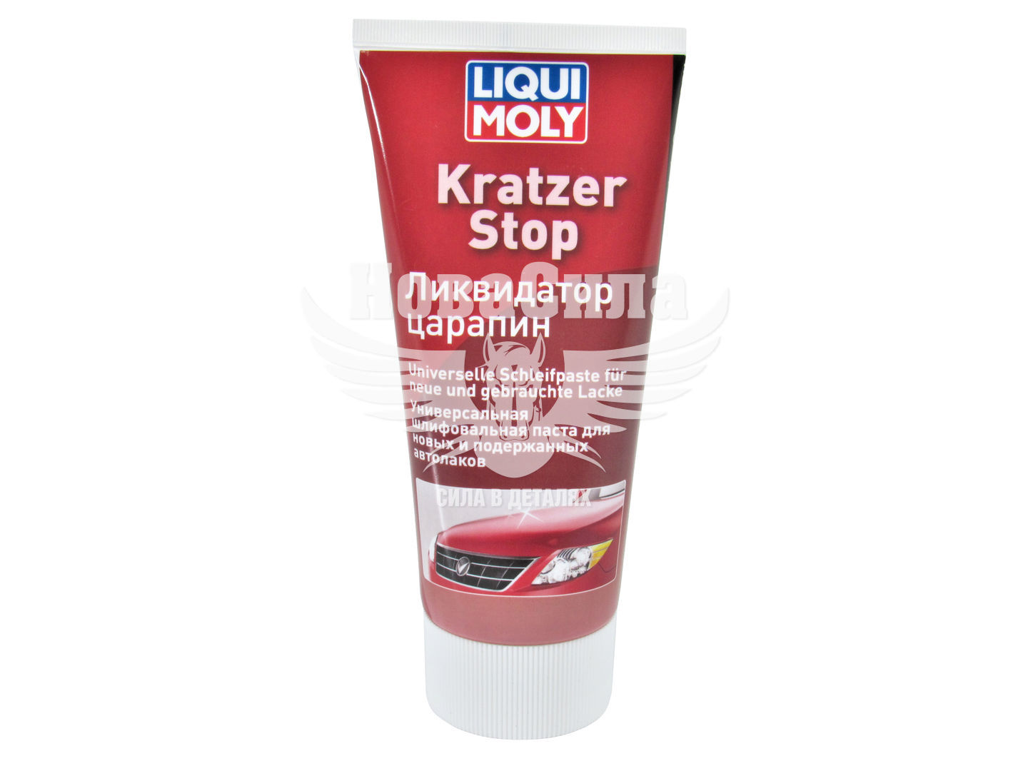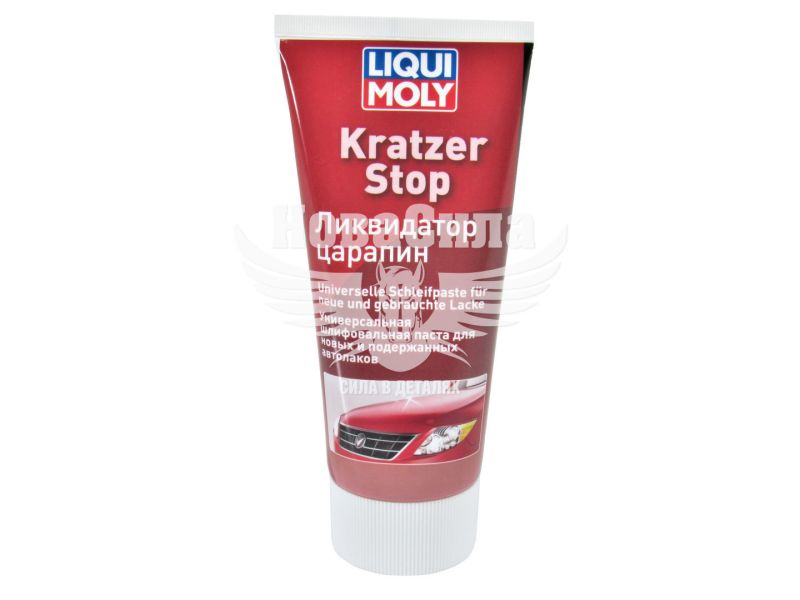 Ліквідатор подряпин Kratzer Stop - являє собою не що містить силікону шліфувальну пасту. Продукт ідеально підходить для видалення подряпин і шагрені. Мікрочастинки на основі оксиду алюмінію забезпечують високу продуктивність і високу ступінь глянцю. У «Kratzer StoppВ» підходить для ручної та машинної обробки. Спеціально розроблений продукт для видалення подряпин і лакових пошкоджень. Підходить для звичайних і металлікових поверхонь. Застосування: Перед застосуванням, оброблювану поверхню необхідно ретельно вимити. Гарненько струснути тюбик. Видавити невелику кількість засобу на тканину і з легким натиском нанести на оброблювану поверхню. При використанні полировальной машинки: встановити кількість обертів не більше 1500-2000 об / хв. Залишки засобу з поверхні прибрати чистою тканиною. Після застосування засобу, рекомендується обробити поверхню захисної поліролью для нових поверхонь