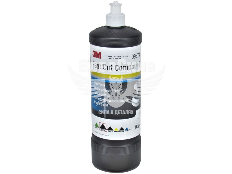 Полірувальна паста 3M 09374 Fast Cut Compound чи розпилювати, може працювати без води або з водою. Ефективно працює як на нових так і на старих лакофарбових покриттів.