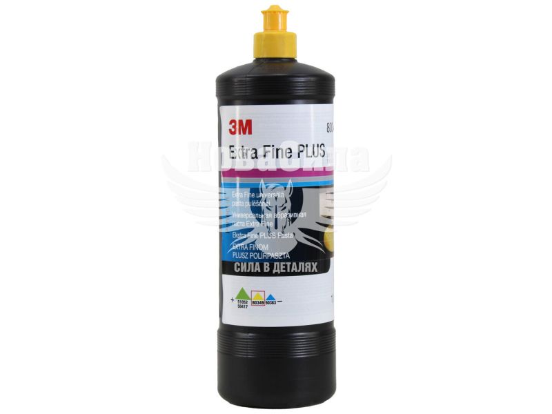 Полірувальна паста 3M 80349 Extra Fine PLUS з жовтим ковпачком - нова полірувальна паста спеціально розроблена для роботи з новими міцними керамічними лаками. Також ефективно працює з 2К емалями. Рекомендується використовувати дану пасту на сухій поверхні спочатку з вовняним полірувальником 01927, а потім з помаранчевим полірувальником 3М 09550.