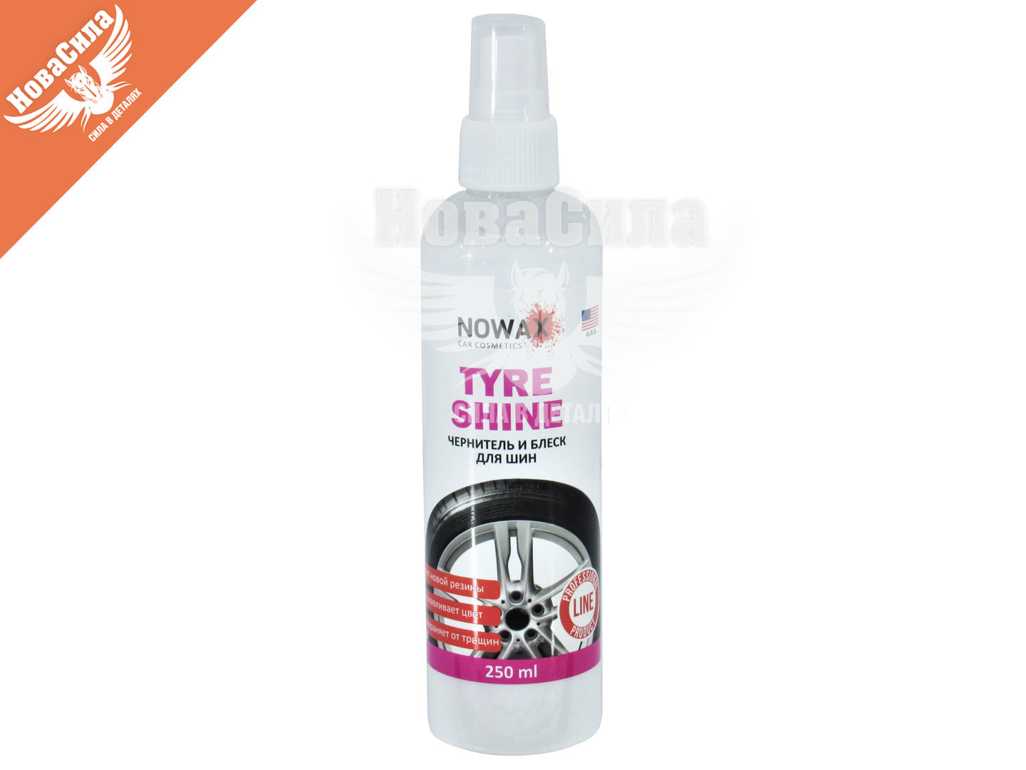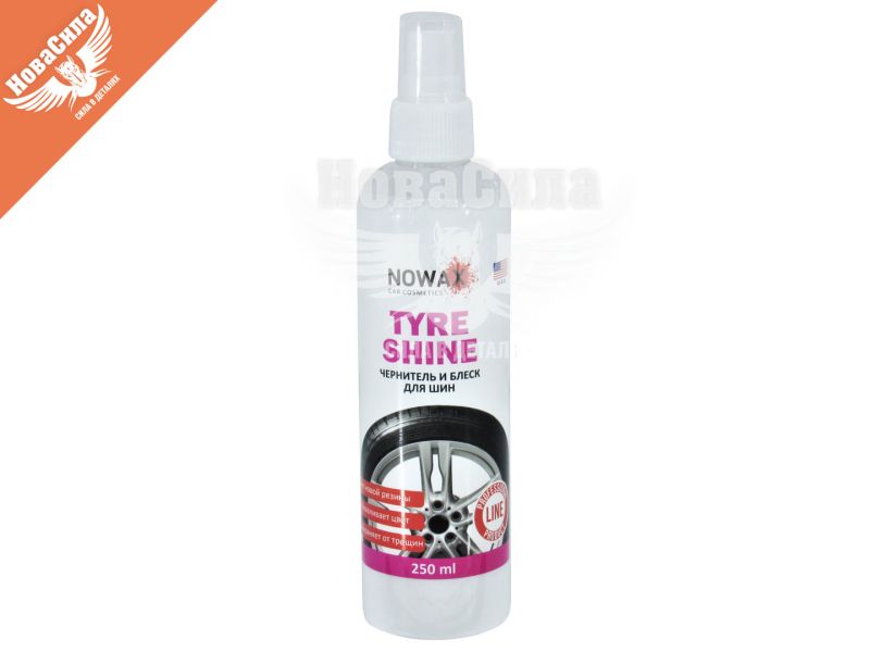Засіб NOWAX Tyre Shine відмінно впорається із завданням оновлення зовнішнього вигляду автомобіля. Даний «чернітель» прекрасно відновлює колір, надає блиск і створює видимість нової гуми. Слід зазначити, що даний засіб призначений не тільки для виконання естетичних функцій, воно захищає гуму від несприятливого впливу навколишнього середовища, розтріскування, а також від солі, яка часто застосовується, щоб прибрати лід на дорогах в зимовий час. До складу NOWAX Tyre Shine крім чорної фарби входить силікон, що дозволяє створити бар'єр, який деякий час буде відштовхувати бруд, пил і воду.
