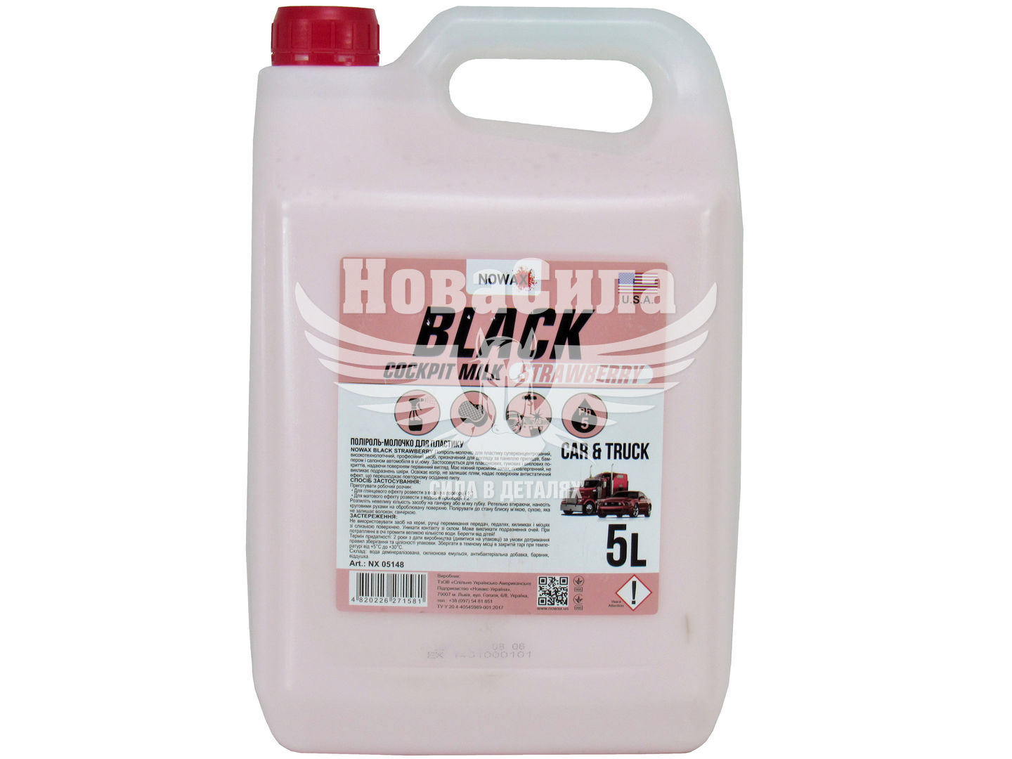 Концентрована поліроль-молочко, призначена для догляду за внутрішнім пластиком, наприклад, панеллю приладів, а також за зовнішніми пластиковими елементами: бамперами, молдингами і накладками. Склад відрізняється високою ефективністю і гарантує швидке і якісне відновлення привабливості зовнішнього вигляду поверхні, насиченості її кольору, а також надає м'який і ненав'язливий блиск. Поліроль Nowax Black Cockpit Milk Strawberry NX01188 після застосування не залишає плям або смуг, а також наділяє оброблені елементи антистатичними властивостями, за рахунок яких чистота поверхні зберігається на дуже тривалий період. Є концентратом і вимагає розведення водою перед застосуванням: для досягнення глянцевого ефекту пропорція становить 1: 1, для матового - 1: 2.