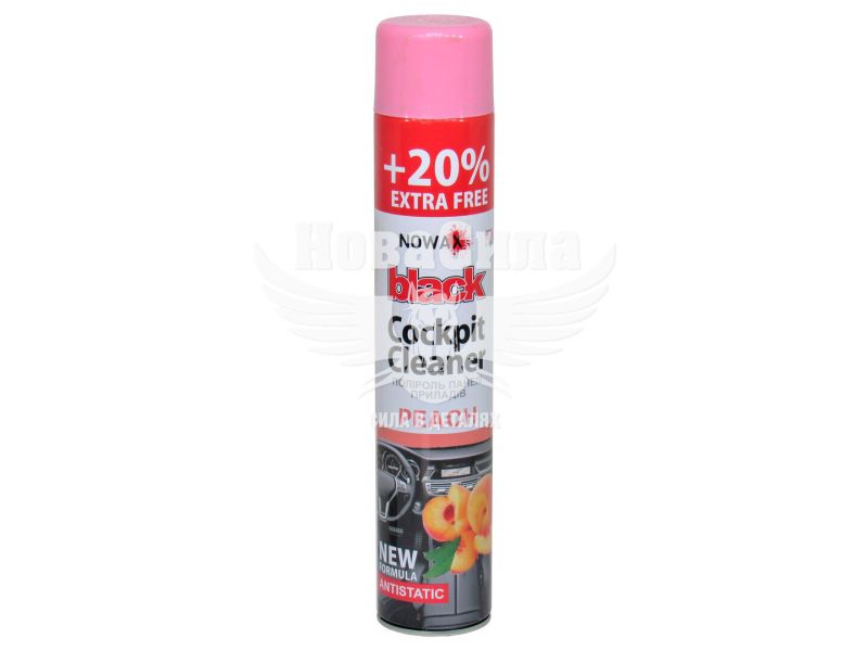 Ефективна поліроль Nowax Black Cockpit Cleaner NX00706 750мл з запахом персику добре очищає від пилу, свіжих і в'їдлих забруднень.