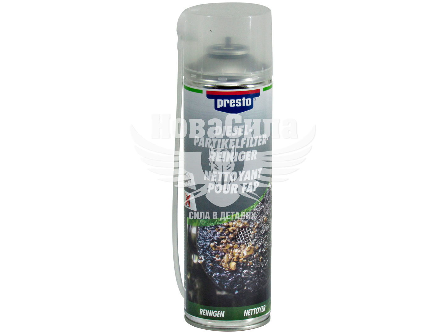 Спеціальний очищувач DPF в аерозольному балончику. Якісно і швидко пом'якшує і усуває вуглецеві утворення і сажу з поверхонь фільтра, без необхідності в його демонтажі і розбиранні. Для зручного введення засобу Presto DPF cleaner 416613 400мл в сажовий фільтр балончик комплектується довгою і гнучкою трубкою-насадкою. Presto DPF cleaner 416613 400мл не містить в складі розчинників або інших агресивних інгредієнтів, завдяки чому не стає причиною появи корозії, не пошкоджує елементи сажового фільтру і лямбда зонд зокрема. Регулярне застосування очищувача Presto DPF cleaner 416613 400мл підтримує чудову чистоту системи DPF і гарантує високу продуктивність, прийомистість, паливну економічність і екологічність сучасних транспортних засобів.