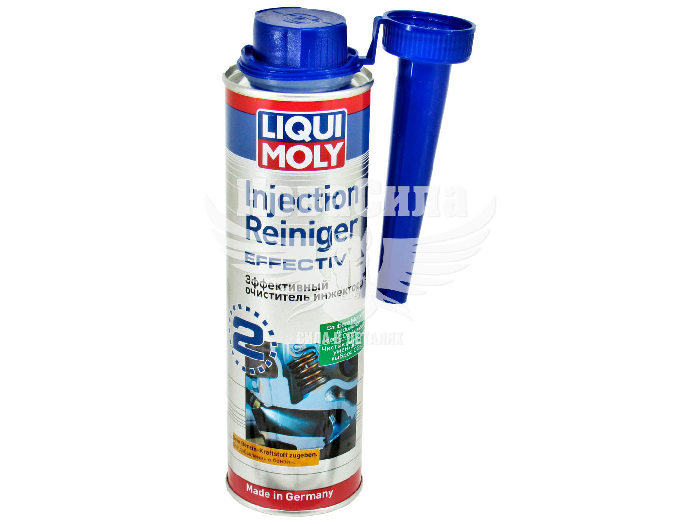 в -2 - Injection-Reiniger Effectiv для більш ефективної профілактики або при появі незначних порушень в роботі системи подачі палива. LIQUI MOLY рекомендує застосовувати Injection-Reiniger Effectiv кожні 2000 км. пробігу, для очищення форсунок і видалення вуглецевих нагару і смолистих відкладень з дозаторів-розподільників, форсунок і інших конструктивних елементів системи упорскування палива. Ця присадка ефективна для будь-яких систем впорскування і гарантує правильне функціонування системи упорскування, низьку витрату палива і зниження концентрації шкідливих речовин у вихлопних газах.