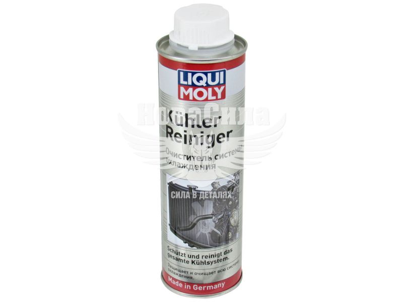 Очищувач системи охолодження Liqui Moly Kuhler Reiniger ,. Відкладення в системі охолодження перешкоджає нормальному теплообміну, блокують роботу клапанів термостата і механізмів регулювання. При занадто великих температурах двигун перестає працювати економічно, збільшується його знос і ймовірність пошкодження, падає потужність. Очищувач видаляє ці відкладення і забезпечує нормальну температуру двигуна, його надійність. Ефективно розчиняє масляні забруднення. Застосування: для всіх систем охолодження і нагрівання. Не містить агресивних кислот і лугів. Додати очищувач в систему охолодження з розрахунку 300 мл очищувача на 10 л охолоджуючої рідини, завести двигун, прогріти його до робочої температури і дати йому попрацювати на холостих обертах 10-30 хвилин. Особливо сильні масляні забруднення видаляються за більший час. Засіб може перебувати в системі охолодження на строк до 3 годин, в тому числі і під час руху автомобіля. Після використання злити рідину з системи охолодження і промити її водою. Залити нову охолоджуючу рідину. Використовувати при кожній зміні охолоджуючої рідини і в разі виникнення проблем з системою охолодження.