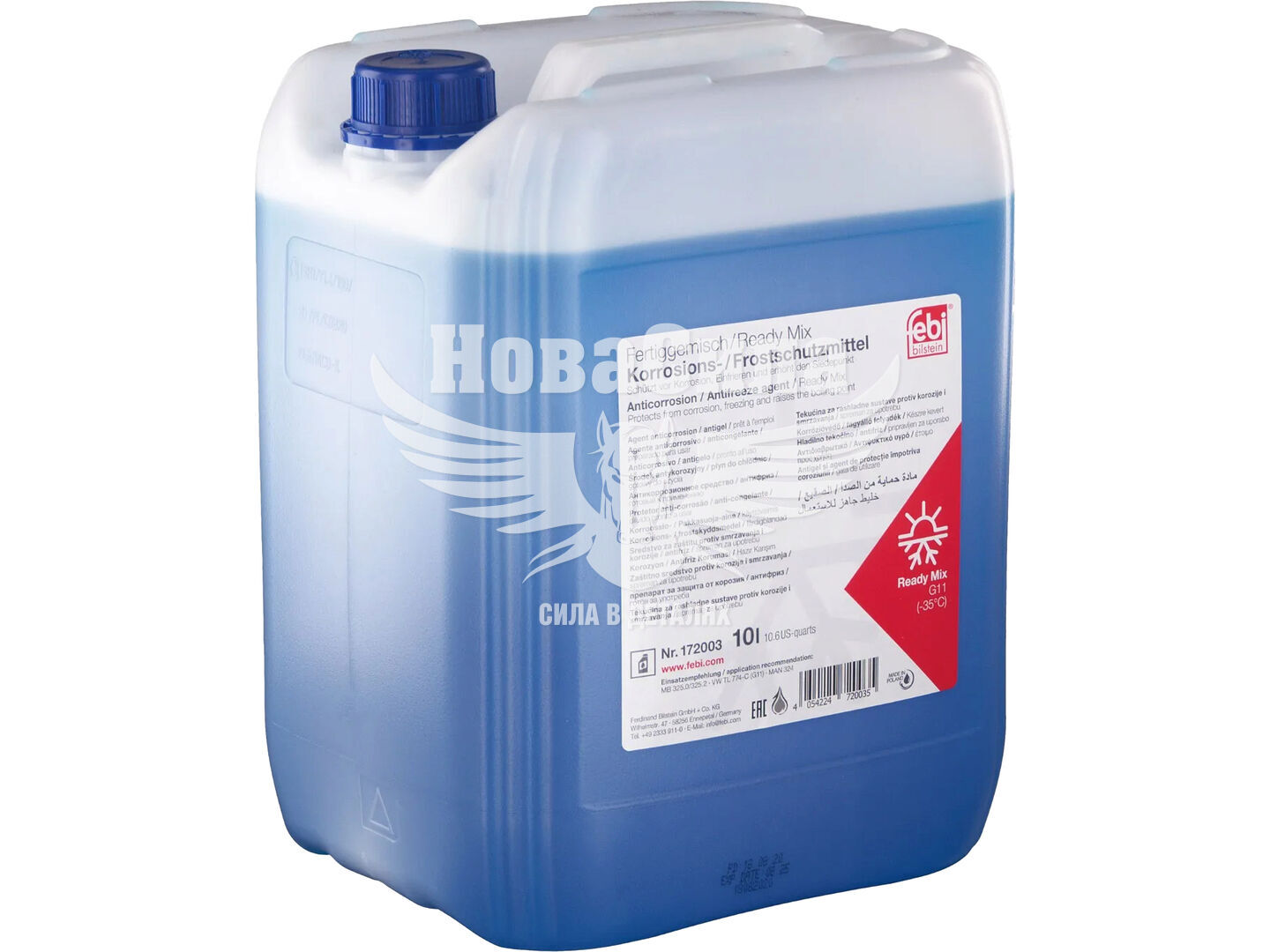 Антифриз Febi Ready Mix G11 синій -35°C (172003) 10 л — це готовий до використання високоякісний охолоджуючий засіб, розроблений для надійного захисту двигуна від замерзання, перегріву та корозії. Продукт підходить як для класичних систем охолодження з чавунними і сталевими елементами, так і для сучасних систем з алюмінію та міді.