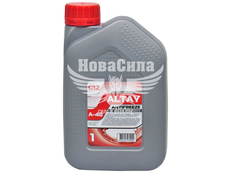 Високоефективна охолоджувальна рідина Altay G12 -24 ° С, призначена для охолодження двигунів сучасних автомобілів зі значною кількістю деталей з заліза. Забезпечує більш ефективний захист деталей з поліаміду (розширювальний бачок системи охолодження). Оберігає двигун від замерзання, перегріву, корозії кавітації. Присутні в складі органічні присадки абсорбуються тільки в пошкоджених корозією місцях. Визнаний багатьма виробниками автомобілів.