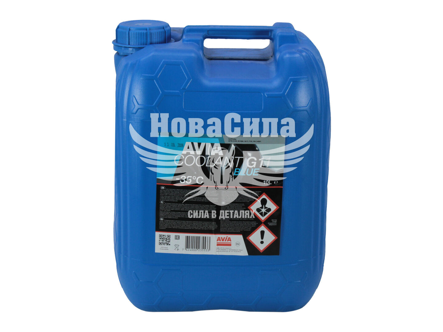 Рідина синього кольору, призначена для використання як теплоносій у системах охолодження седанів, фургонів, вантажівок та автобусів як нових моделей, так і минулих років випуску. Основою антифризу AVIA є моноетиленгліколь, який відрізняється чудовою стабільністю при високих температурах, а також низькою температурою кристалізації, яка дорівнює -35 градусів Цельсія. Завдяки сучасній формулі присадок антифриз AVIA відрізняється найефективнішими захисними властивостями та запобігає появі іржі на металевих поверхнях, перешкоджає розтріскування прокладок та патрубків. Повністю відповідає вимогам провідних вітчизняних та зарубіжних виробників автомобілів.