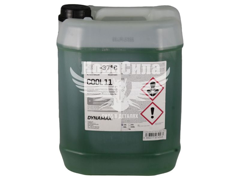 Готовий антифриз зеленого кольору, виготовлений на основі з етиленгліколю з додаванням комплексу активних присадок, у тому числі змащувальних, протипінних та інгібіторів корозії, завдяки чому гарантує максимальний захист двигуна від перегріву навіть в умовах високих навантажень, а також запобігає появі іржі та кавітаційної коррозії. елементи. Відповідає вимогам класифікації G11 та підходить для використання в бензинових та дизельних двигунах вітчизняних та імпортних транспортних засобів як нових моделей, так і минулих років випуску. (Dynamax) G11 зелений -37°C 503277 є повністю нейтральною по відношенню до прокладок, патрубків та шлангів. Відрізняється продовженим терміном експлуатації – до 200 000 км пробігу, що сприяє зниженню експлуатаційних витрат.