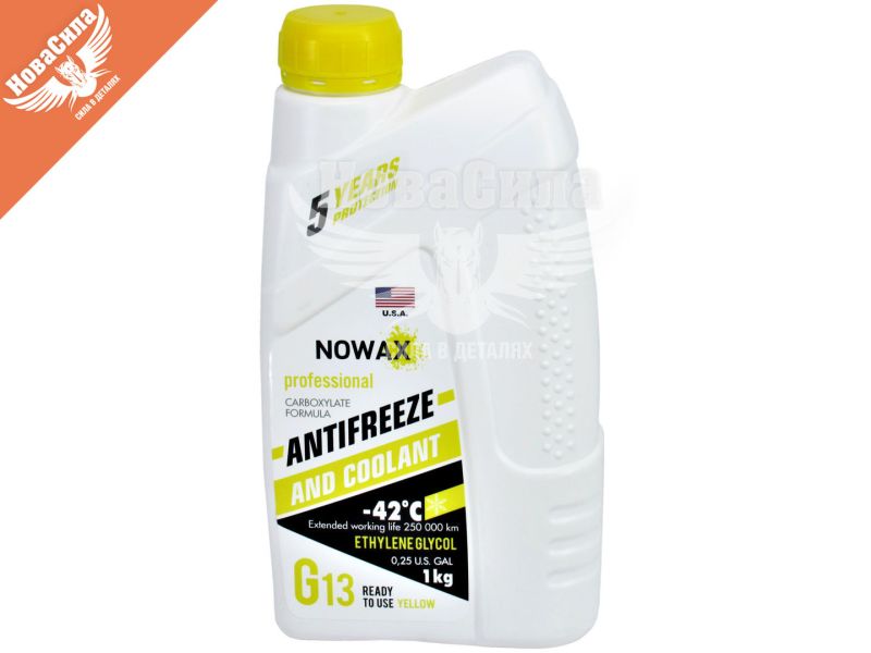 Преміальна охолоджуюча рідина - антифриз - виробництва компанії Nowax, пофарбована в жовтий колір. Відповідає сучасному класу G13 і виготовляється на основі з етиленгліколю і спеціально підібраних присадок без додавання нітратів, нітритів, силікатів, фосфатів і боратів (солей борної кислоти). Даний антифриз може використовуватися як і в нових алюмінієвих блоках циліндрів і системах охолодження, так і в традиційних двигунах (з блоком циліндрів з чавуну).