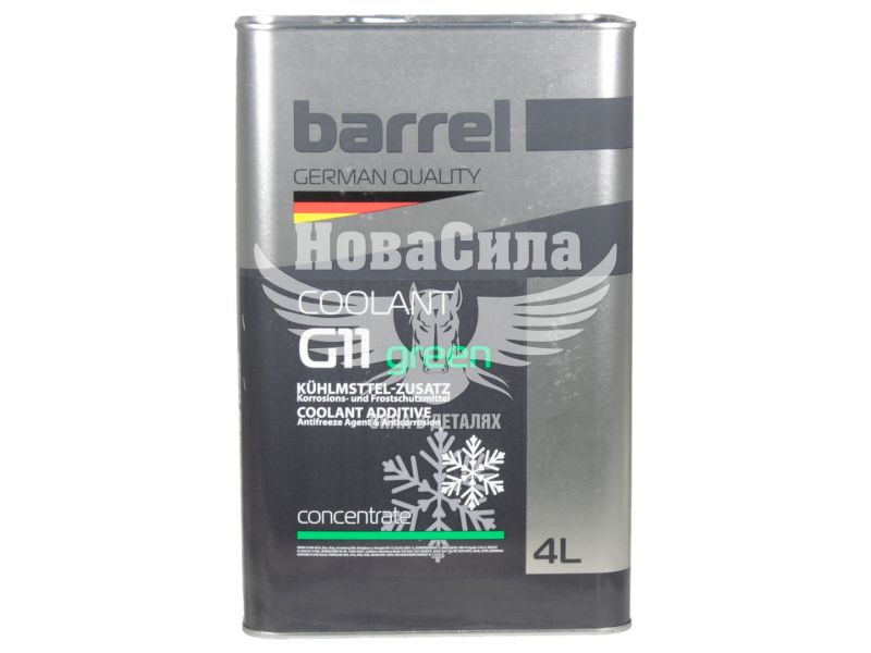Антифриз Barrel Coolant Concentrate G11 - це запорука довгого і безперебійної роботи системи охолодження двигуна. Охолоджуюча рідина класифікації G11 - це традиційна технологія виробництва силікатних антифризів, в яких в якості присадок використовують неорганічні речовини, що сприяє захисту системи охолодження від корозії. Також варто відзначити, що антифриз класу G11 здатний впоратися з температурою до -80 ° С.