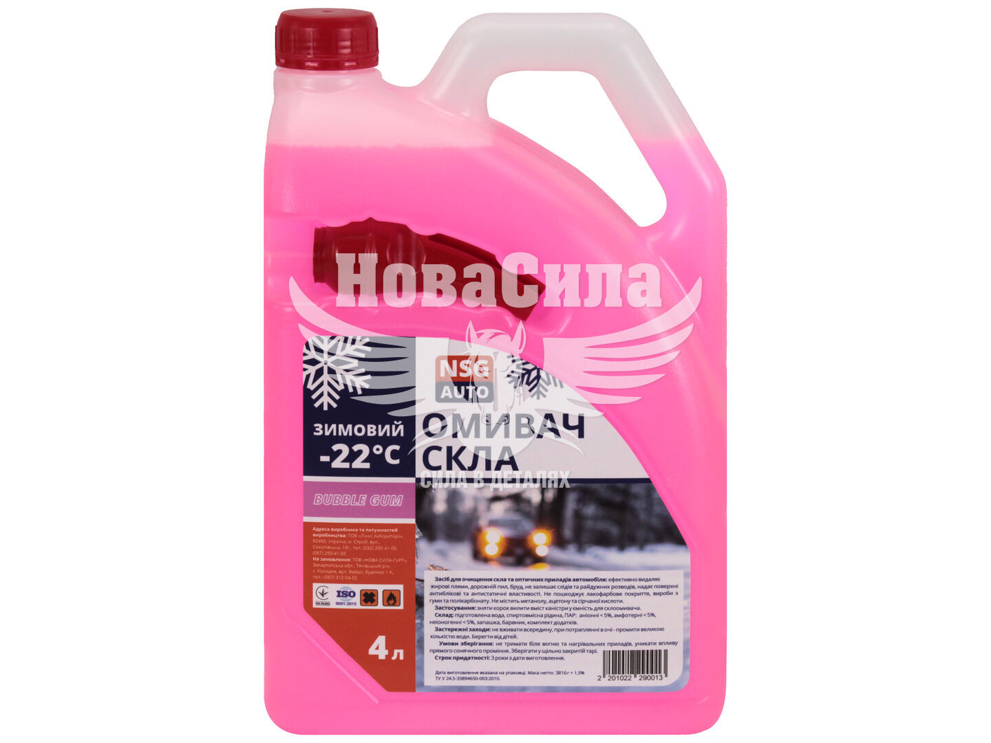 Омивач скла зимовий (NSG AUTO) -22 Bubble Gum 4л - це високоякісна рідина для мийки скла, розроблена спеціально для ефективного використання в холодну пору року. Надаючи відмінний захист від замерзання та чудову чистоту вікон автомобіля, цей продукт є ідеальним вибором для зимового періоду.