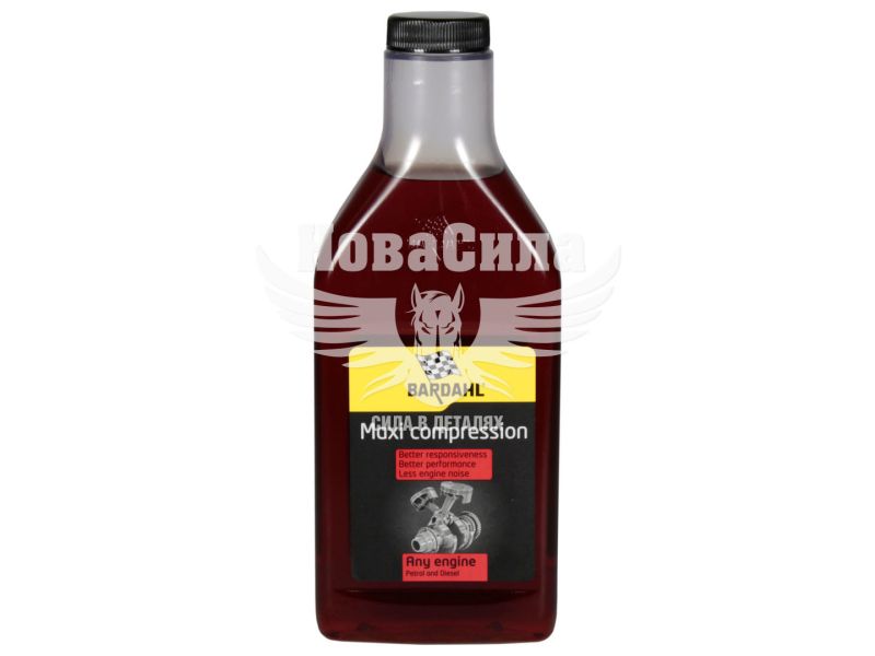 Присадка в моторне масло, що поліпшує його в'язкі характеристики при високих температурах. Має здатність відновлювати заводські значення компресії в циліндропоршневій групі і особливо рекомендується для старих моделей автомобілів, а також автомобілів з великим пробігом. Присадка Bardahl Maxi Compression 1030B 437мл забезпечує формування міцної мастильної плівки, яка мінімізує простір між елементами, за рахунок чого сприяє високій продуктивності двигуна. Використання присадки Bardahl Maxi Compression 1030B 437мл гарантовано знижує витрату масла на чад і скорочує кількість чорного диму у вихлопних газах. Відновлює еластичність прокладок і ущільнювачів, які висихають в результаті впливу високих температур, надійно перешкоджаючи витоку масла. Не містить твердих або нерозчинних частинок і є повністю сумісним з системами очищення відпрацьованих газів.