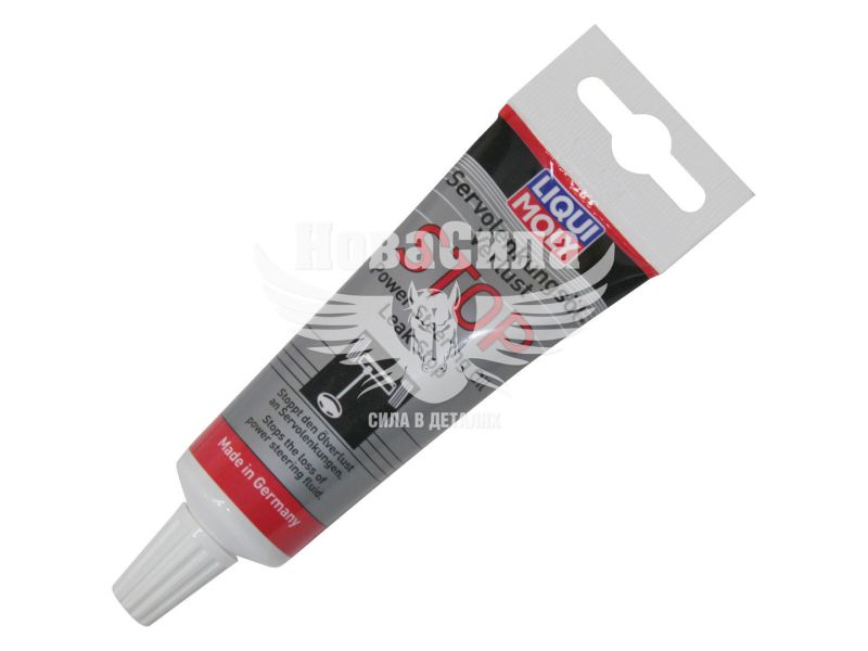 Герметик гідропідсилювача керма Liqui Moly Servolenkungsoil-Verlust-Stop містить спеціальні присадки, що відновлюють гумові та пластмасові ущільнення. Таким чином, втрати води в системі в ГУР запобігають, а наявні усуваються. Також відбувається очищення каналів руху гідравлічної рідини, посилюються миючі властивості ATF. Скорочує неузгодженість сервомеханизма з рульовим приводом. Збільшується ресурс деталей рульового управління, продовжується працездатність масла для гідропідсилювача, знижує витрати на ремонт. Застосування: Герметик гідропідсилювача керма усуває витоку при добавці в робочу рідину сервоприводів. Тюбика 35 ml досить для до 1 л. об'єму рідини. Для рульових систем, що заповнюються ATF II і ATF III.