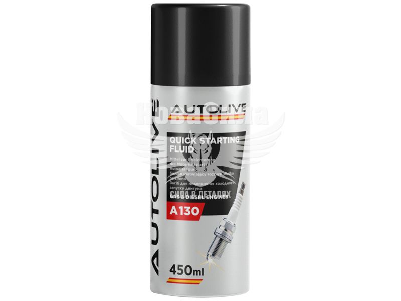 Швидкий старт для запуску дизельних та бензинових двигунів Autolive Quick Starting Fluid 450 мл (ефір) (A130) – це ефективний засіб від бренду Autolive, призначений для полегшення запуску двигунів при низьких температурах (до -50°C), підвищеній вологості, різких перепадах температур, мокрих свічках запалювання, слабкому акумуляторі або низькій якості палива. Продукт допомагає знизити ризик критичного розряду акумуляторної батареї, зменшує навантаження на стартер та береже свічки запалювання від надмірного зносу. Купити швидкий старт Autolive Quick Starting Fluid – значить забезпечити надійний запуск вашого автомобіля в будь-яких умовах.