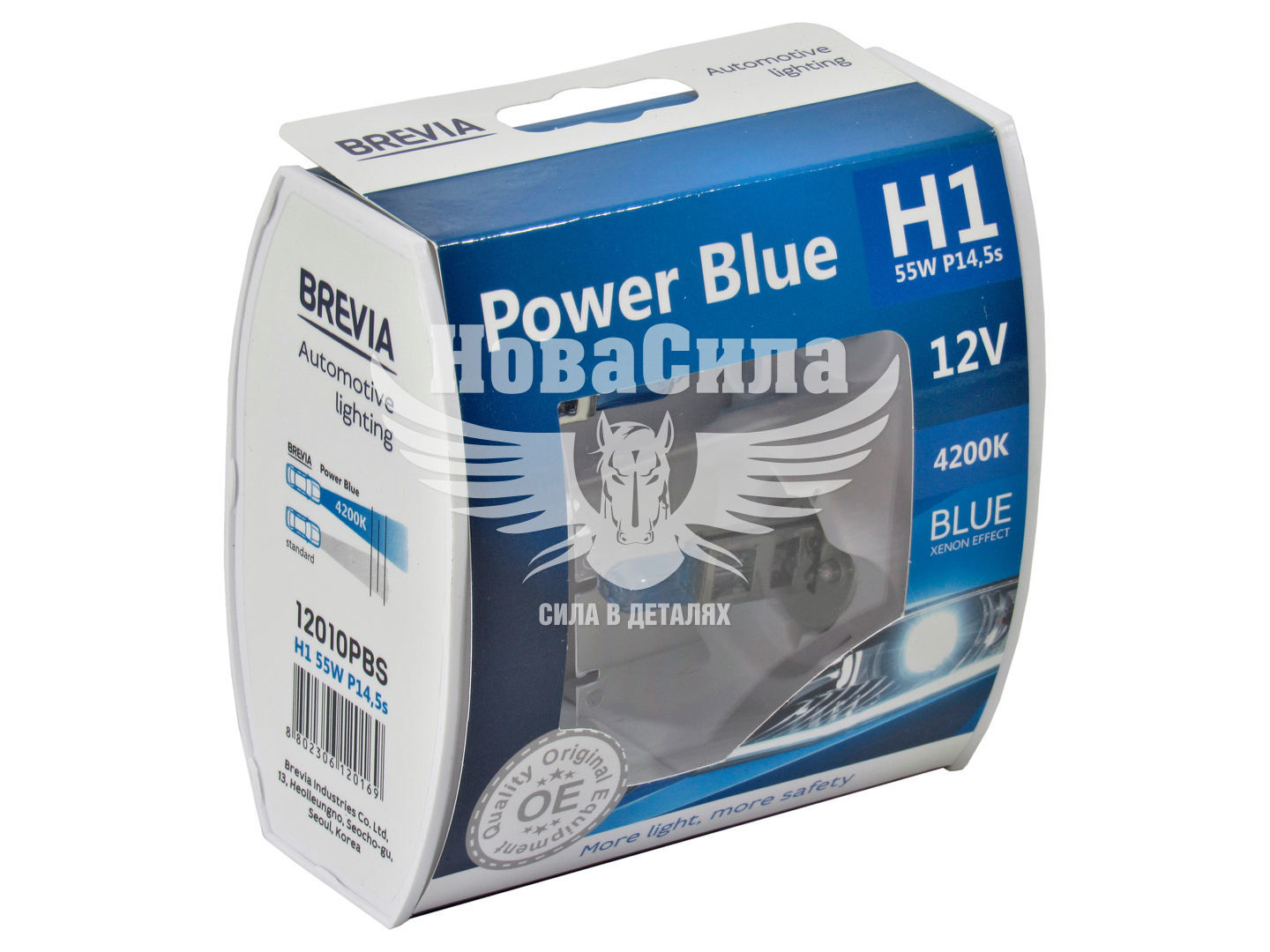Блакитно-біле світло має колірну температуру до 4200К і є рішенням для водіїв, які хочуть виділитися із загальної автомобільної маси. Лампи Brevia Power Blue створюють у фарах унікальний ксенон-ефект і освітлюють дорогу яскравим блакитнувато-білим світлом. Дані лампи не впливають на безпеку і тому є вірним рішенням для шанувальників стильного водіння.