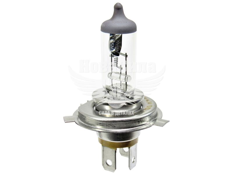 Цоколь типа Н4/P43t, у которого три контакта, имеет жесткий допуск на расположение спирали относительно фланца, что позволяет размещать ее точно в фокусе отражателя или на нужном расстоянии от него. При дальнем света потребляемая мощность 100 Вт, а при ближнем 90 Вт. Колірна температура 3200 К, це жовте світло, яке комфортне для очей і не засліплює водіїв зустрічного транспорту. Колба прозора неокрашенная, виготовлена з якісного скла, воно міцне і скорочує вплив шкідливого ультрафіолету на фари.
