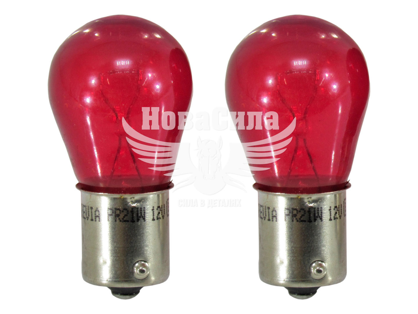 Лампочка 1-но конт. груша червона 12V-21/5Вт PR21/21W BAW15s (Brevia) (к-т. 2шт.)