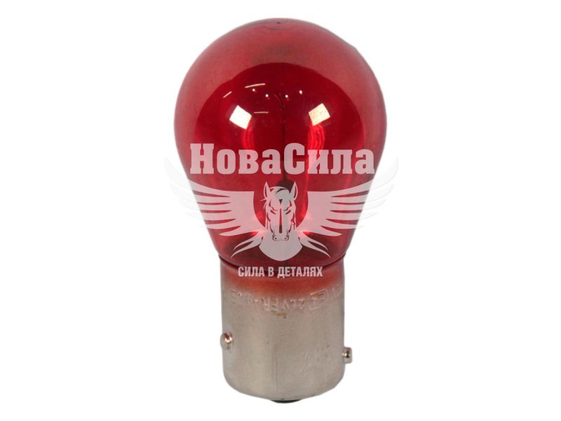 Лампочка розжарювання прозора з пофарбованої колбою в червоний колір. Цоколь лампочки BAW15d байонетний з одним контактом, він вставляється і повертається на 90 градусів. Нитка розжарювання у вигляді однієї спіралі. Номінальна потужність в 21 Вт, дає досить хороше світіння, з силою світлового потоку 110 Лм, для виконання своєї функції. Робітничо напруга 12 В, це означає що лампу можна встановлювати в легкові автомобілі і мотоциклів. Термін експлуатації цих надійних ламп в середньому 600 годин.