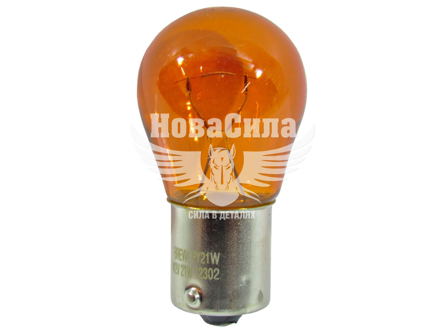 Лампочка 1-но конт. груша жовта 12V-21Вт PY21W BAU15s (Brevia) (упак.-10шт.)
