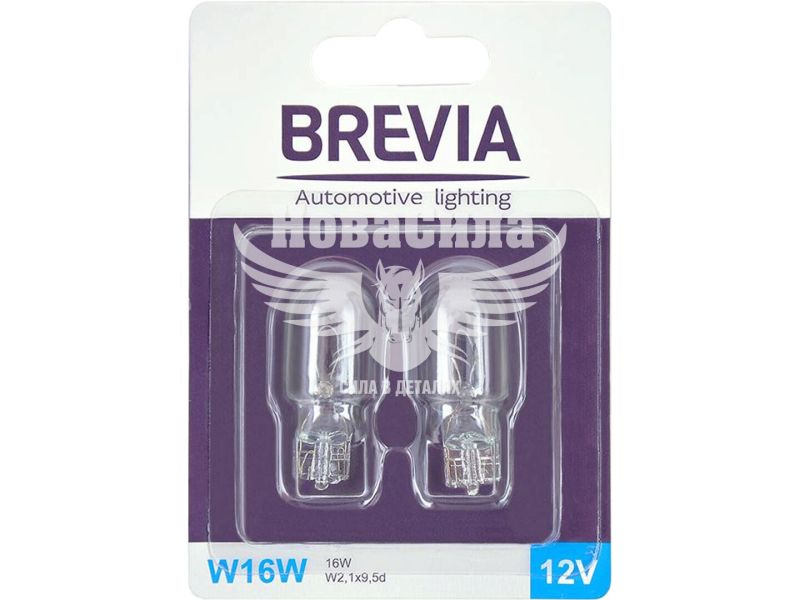 Лампа накаливания Brevia W16W 12V 16W W2,1x9,5d 12333B2 – висока якість та надійність освітлення для вашого авто