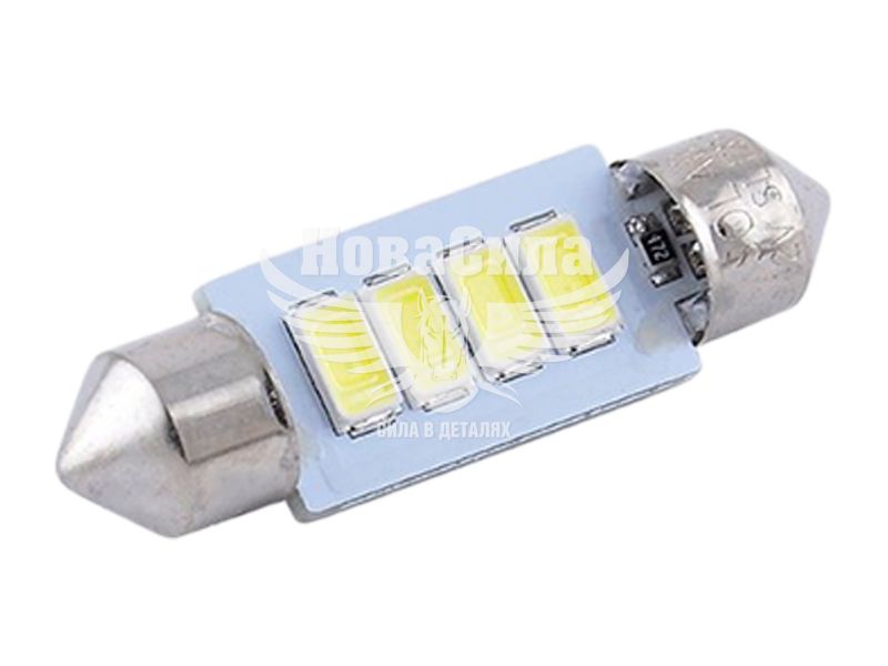 Лампочка 2-ох цокольна LED T11_C5W SMD біла 4-діоди 12V-5Вт SV8.5-8 36мм. (Solar) (к-т.-2шт.)
