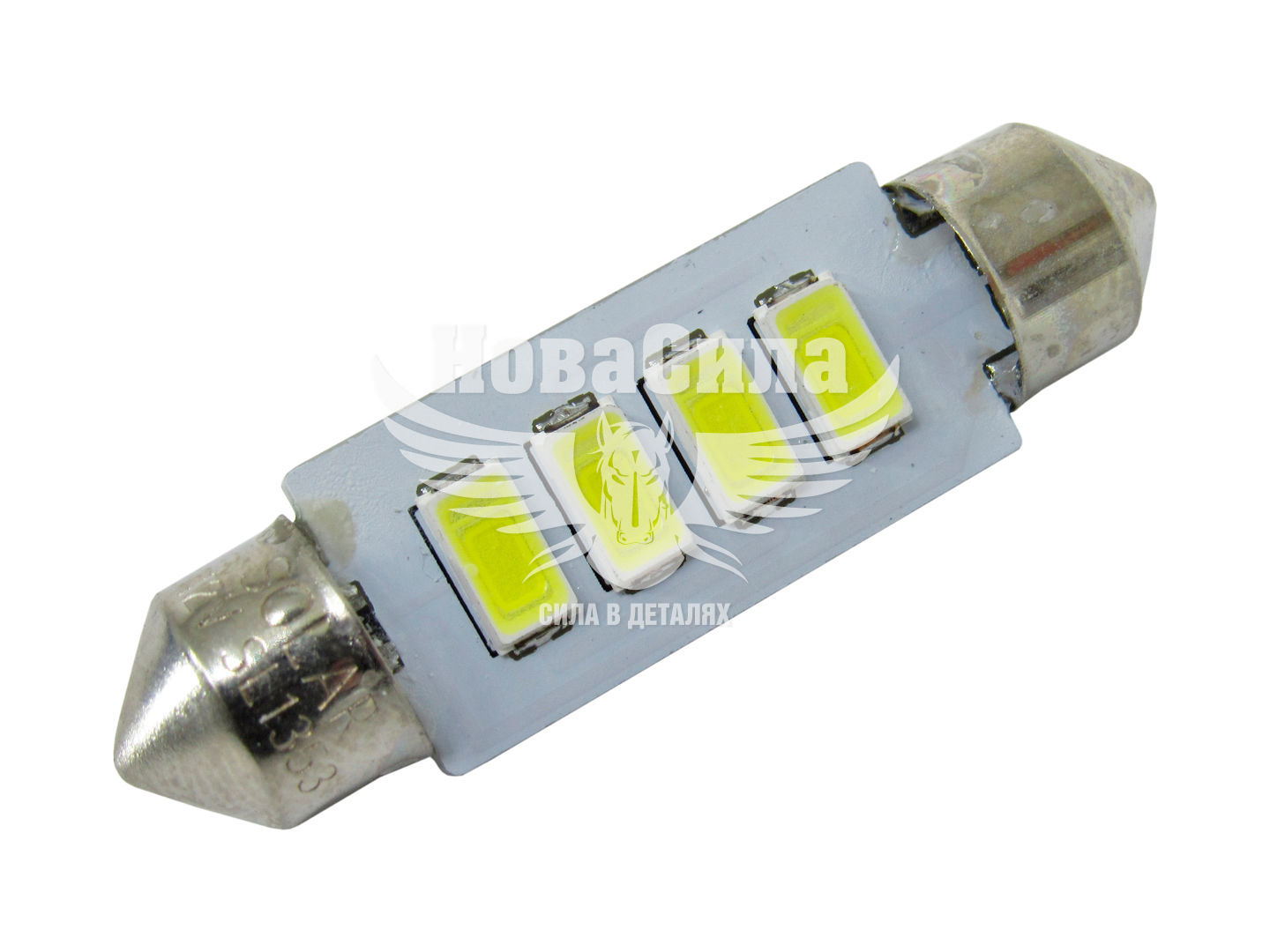 Лампочка 2-ох цокольна LED T11_C5W SMD біла 4-діоди 12V-5Вт SV8.5-8 39мм. (Solar) (к-т.-2шт.)