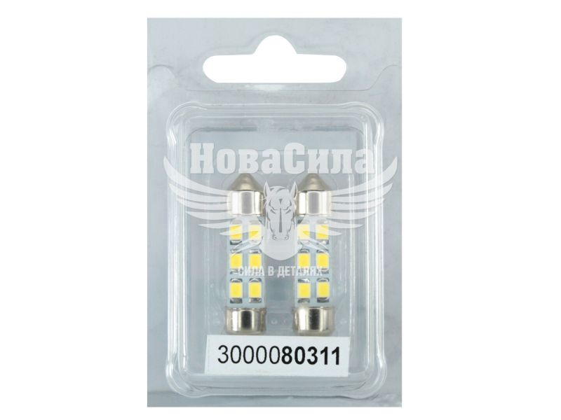 Лампочка 2-ох цокольна LED T11_C8W SMD біла 6-діодів 12V-0,7Вт SV8.5-8 35мм. (Futura) (к-т.-2шт.)