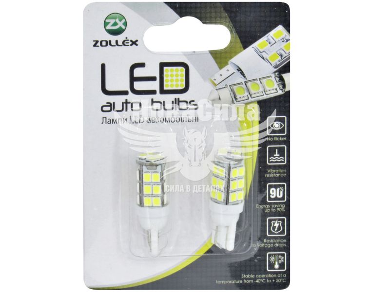 Лампочка без цоколя LED T10_W5W SMD біла 28-діодів 12V W2.1x9.5d (Zollex) (к-т.-2шт.)