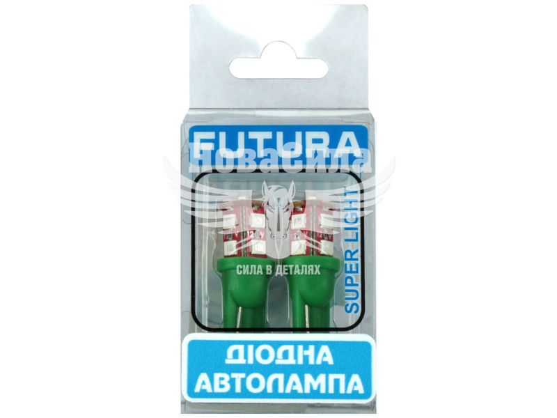 Лампочка без цоколя LED T10_W5W SMD зелена 12-діодів 12V W2.1x9.5d (Futura) (к-т. 2шт.)