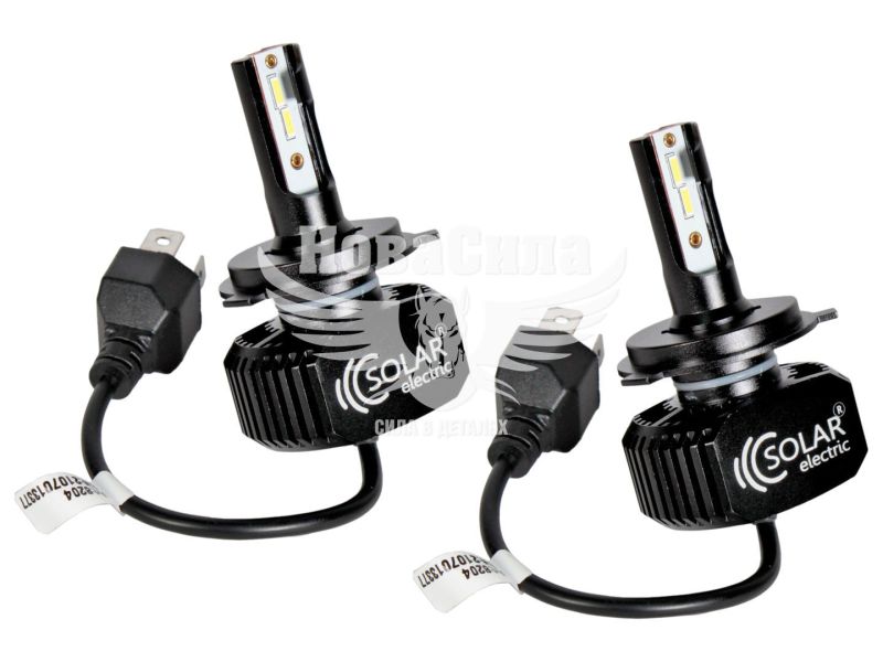 Потужні світлодіодні лампи LED SOLAR H4 12/24V 6000K 5000Lm 40W CSP 1860 8204 (2 шт.) стануть чудовою заміною на класичні лампи розжарювання або галогенні лампи. Відрізняються дуже компактними розмірами та легко встановлюються у будь-яку фару з цоколем Н4, у тому числі у невеликі фари субкомпактних автомобілів. У лампах використовуються світлодіоди CSP, які відрізняються низьким енергоспоживанням, невеликим нагріванням і дуже високою потужністю, завдяки чому забезпечують чудову видимість в умовах недостатнього освітлення і мають неймовірно тривалий термін експлуатації до 30000 годин безперервного світіння. Світлодіоди в лампах розташовані там же, де і нитка розжарення у звичайних лампах, за рахунок чого виключається необхідність заміни скла фар.