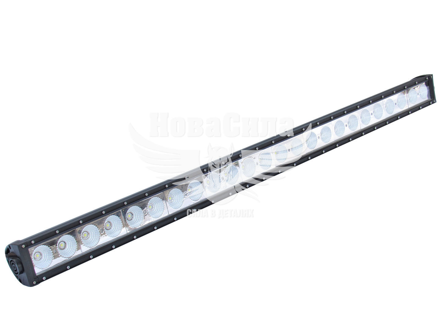Це однорядна світлодіодна балка від бренду БЕЛАВТО, послужить як додаткове світло для головної оптики Вашого автомобіля. Призначена для ближнього світла, так як випромінюване світло має великий кут розсіювання. Вона яскрава, добре підсвічує дорогу і узбіччя, в темний час доби або при поганих погодних умовах. Корпус фари герметичний, виготовлений з алюмінію чорного кольору, це легкий міцний матеріал з хорошою теплопровідністю. Форма пряма, прямокутна шириною довжиною 1276 мм, висотою 76 мм і товщиною 86 мм. Такі фари-балки встановлюються на різні транспортні засоби, а місцем установки може бути дах, решітка радіатора або місце над переднім бампером.