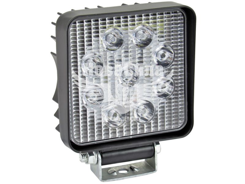 У даній моделі 9 діодів, високої інтенсивності. Потужність споживання одного діода 3 Вт, що в сумі дає споживану потужність фари в 27 Вт. Світло біле яскраве, з колірною температурою 6000 К, що дає блакитний відтінок. Широкий діапазон робочих напруг від 9 В до 32 В постійного струму. Корпус фари квадратної форми, виготовлений з якісного пластика, чорного кольору, з міцним сталевим монтажним кронштейном, який витримує експлуатацію навіть в екстремальних умовах. Лінзи, стійкий до нагрівання і механічних деформацій, формують досить довгий промінь з невеликим кутом розсіювання. Може повноцінно працювати при температурі від -40 ° C до 85 ° C. Тривалий термін служби діодів, більше 30000 годин.