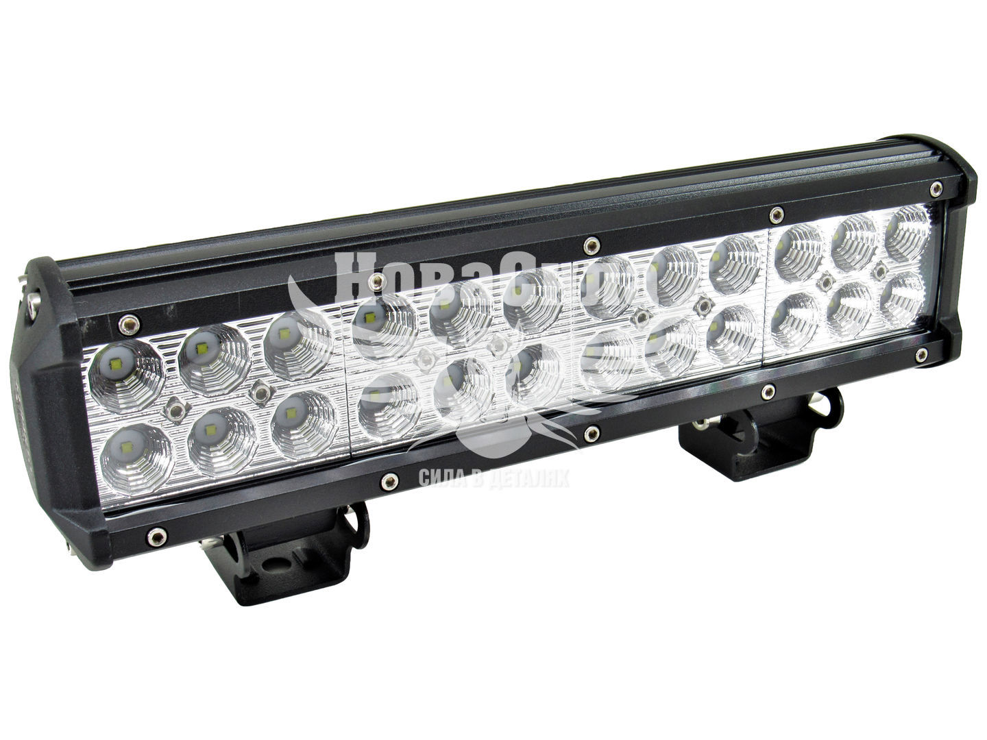 У даній моделі 24 діодів, компанії GREE, яка є лідером у виробництві напівпровідникових світлодіодів. Вони розміщені в дві лінії. Потужність одного діода 3Вт, що в сумі дає потужність фари 72Вт, а світловий потік 6000Лм. Металевий відбивач рифлений, за допомогою якого промінь стає розсіяним, збільшуючи освітлювану область. Колір світла яскравий білий з холодним відтінком, температура світіння 6000К. Скло фар прозоре, гладке.
