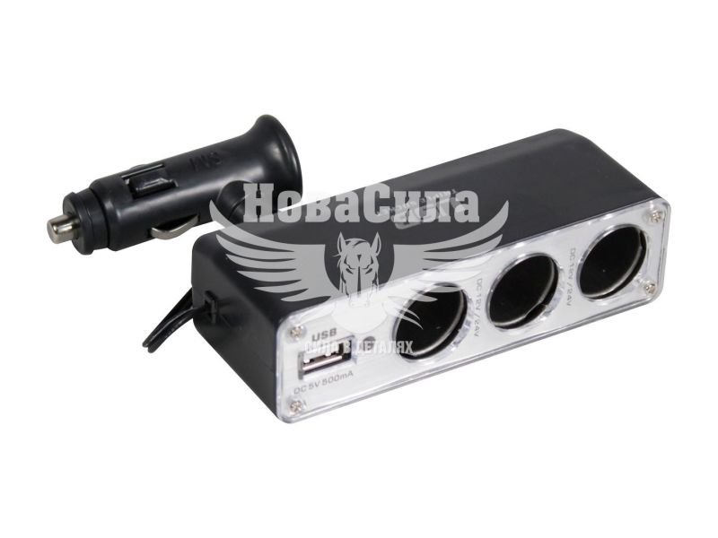 Розгалужувач прикурювача 3в1+USB (Vortex) (12-24V, 0,5A)
