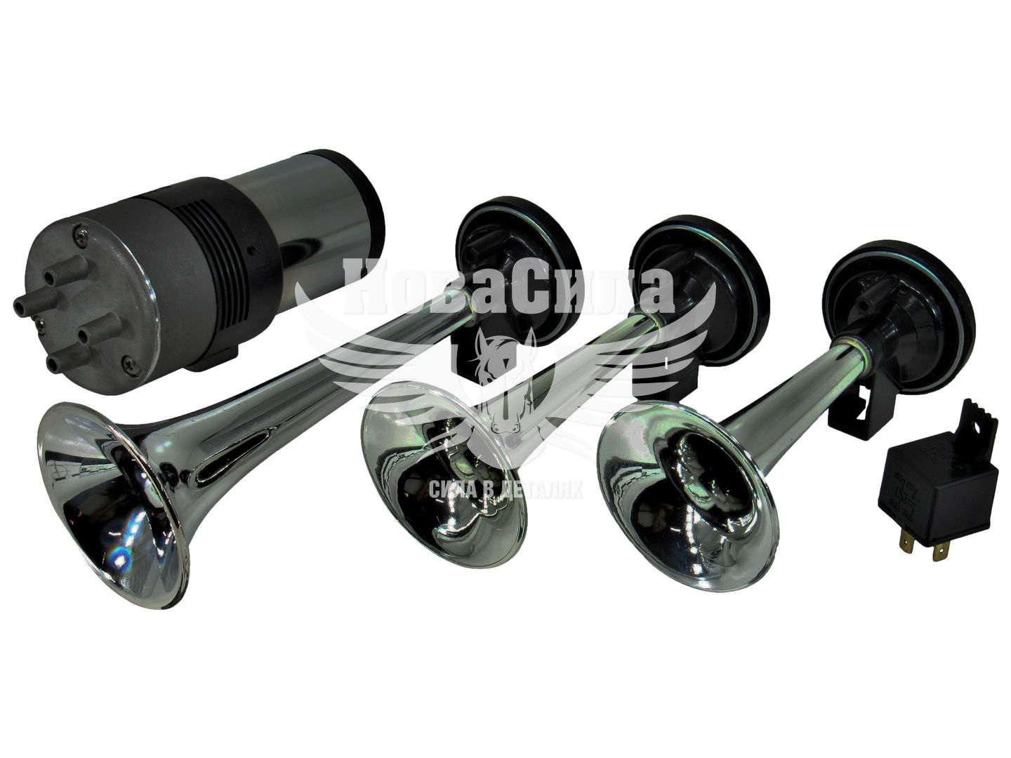 Сигнал повітряний 12V 3 тр. хром (Elegant)