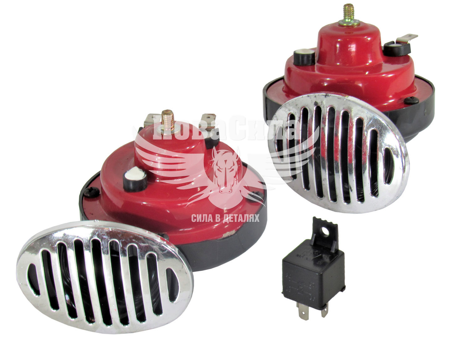 Сигнал ракушка (Vitol) 12V 2-конт. черв./чорн. хром. кришк.