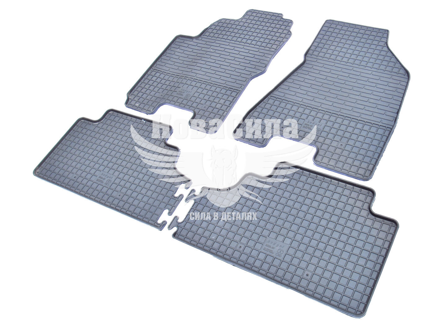 Цей комплект включає чотири килимки, які точно відповідають зонам салону автомобіля: переднім та заднім сидінням. Вони мають антизлизуючу поверхню, яка не тільки забезпечує безпеку пасажирів, але і додає комфорту під час руху.